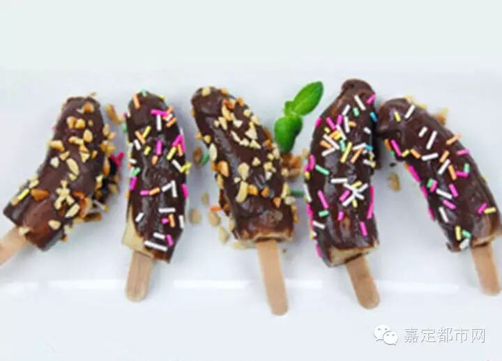 ▌原料:香蕉5根、木棍5根、巧克力3杯、黄油3汤匙(45ml)、花生碎、彩糖