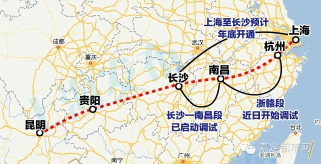 据铁路上海站消息:沪昆高铁浙赣段开始启动联调联试,预计年底至长沙段将全部开通,拟采用最高等级300km/h动车组列车。以后从魔都出发3.5小时可到南昌,5小时就能到长沙咯。这是可以到长沙吃碗米粉、当天再赶回上海的节奏啊?