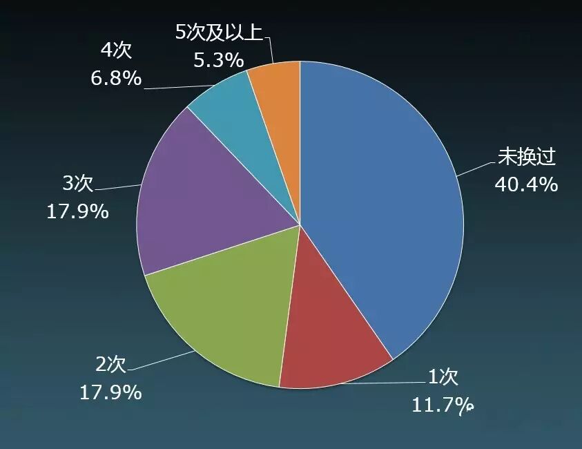 在调查中,有超过4成的人从未换过工作,换过1-2次工作者近3成。