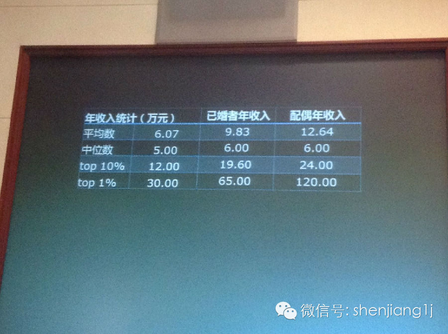 而且我惊讶地发现,这些精英人士的配偶收入更是高达120万。(学者补充说明,由于被访对象女性偏多,结婚比较晚,她们的配偶多是70后,所以会出现这个120万)。