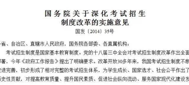 国务院关于深化考试招生制度改革的实施意见(节选)