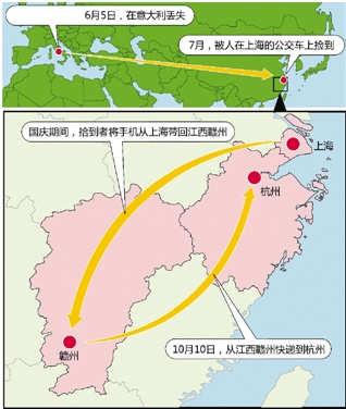 标题: 【手机奇幻漂流记】在意大利丢,在上海被捡,终寄回失主