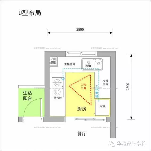 布局规划常见的橱柜布局有“I”型、“L”型、“U”型、双线型等。根据厨房空间大小及户型结构,合理选择布局,并尽量遵从工作区设计原理进行规划。I型布局I型布局适合面积偏小,空间狭长的厨房。