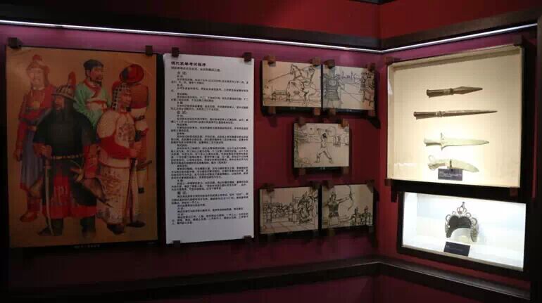 博物馆以时间为主轴,介绍了各朝代的武举制度。武举制度创立于唐代。公元702年,武则天创立武科举,为习武之人敞开了一扇跻身政坛之门。