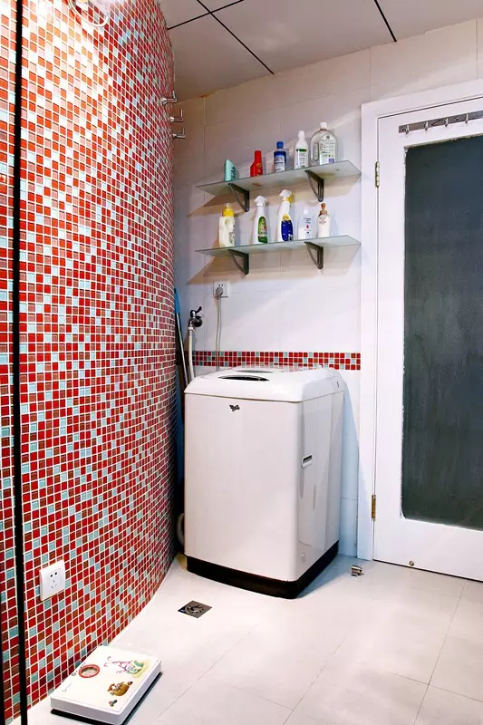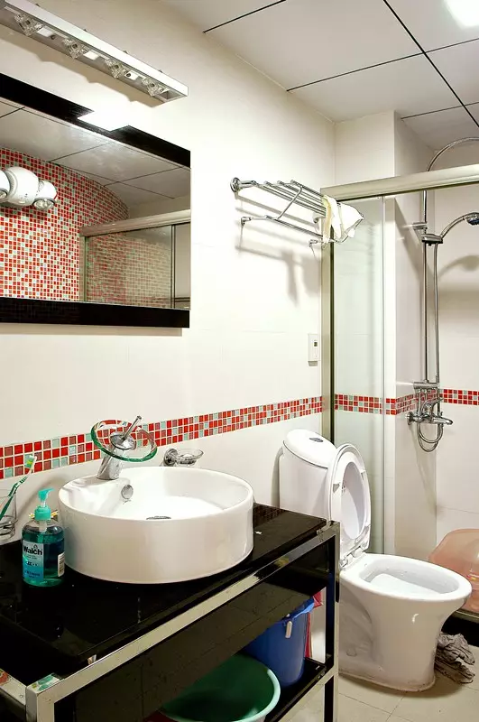 同时,弧形的墙面很难铺设瓷砖,使用马赛克的话会是更妥帖的选择。业主家红色马赛克的点缀也让整体卫浴空间多了一丝活跃干,弧形的墙体也让原本单调的卫浴间显得别具一格。