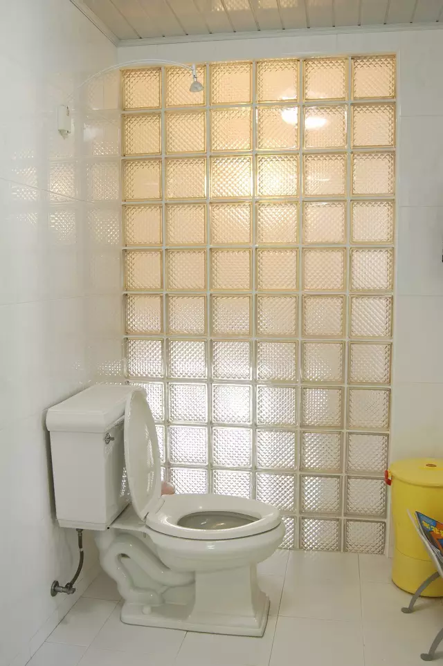 改建之后的卫浴空间变得很宽敞,各个功能区域的划分也变得更加细致。透明玻璃围成的明清砖墙作为淋浴房,另一侧是坐便器和洗手台,空间的布局很特别,也可以从很多方面看到设计师的创意亮点。