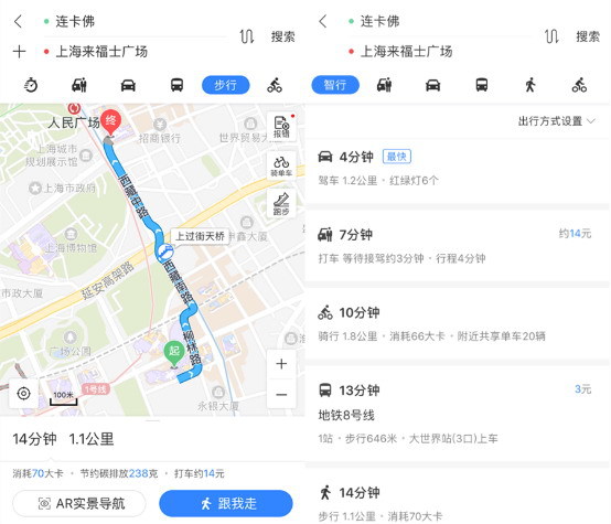 在这里提醒大家一下,提前做攻略这点很重要!楼主平日出行都觉得打车肯定最快最方便,但打开地图一看才发现有时未必。比如百度地图会根据当前交通情况智能计算时间,比如像圣诞节这种交通拥堵的时候,加上红绿灯和拥堵时间,有时可能走路都比打车快=_=|||