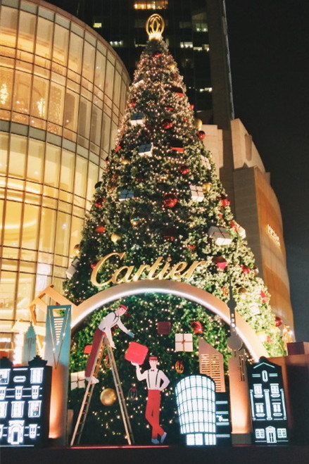 下班直接骑了个单车到恒隆广场,15米高的卡地亚圣诞树第一感觉就是霸气!圣诞树底部的城市缩影设计蛮有意思的,还有投影小动画。楼主看的时候旁边大爷一个劲儿问楼主:这里面是不是真人?楼主满脸黑人问号……OK,拍照打卡,卡地亚圣诞树GET。